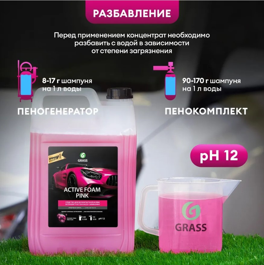 Активная пена Grass «Active Foam Pink» цветная пена, 5 л