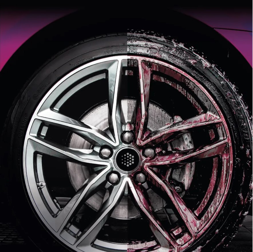 Состав разработан специально для очистки колесных дисков. IR «Iron» незаменим для удаления въевшейся тормозной пыли на дисках, которую невозможно полностью очистить обычными средствами. IR «Iron»расщепляет загрязнение за несколько минут, по завершению приобретая малиновый (марганцевый) оттенок.