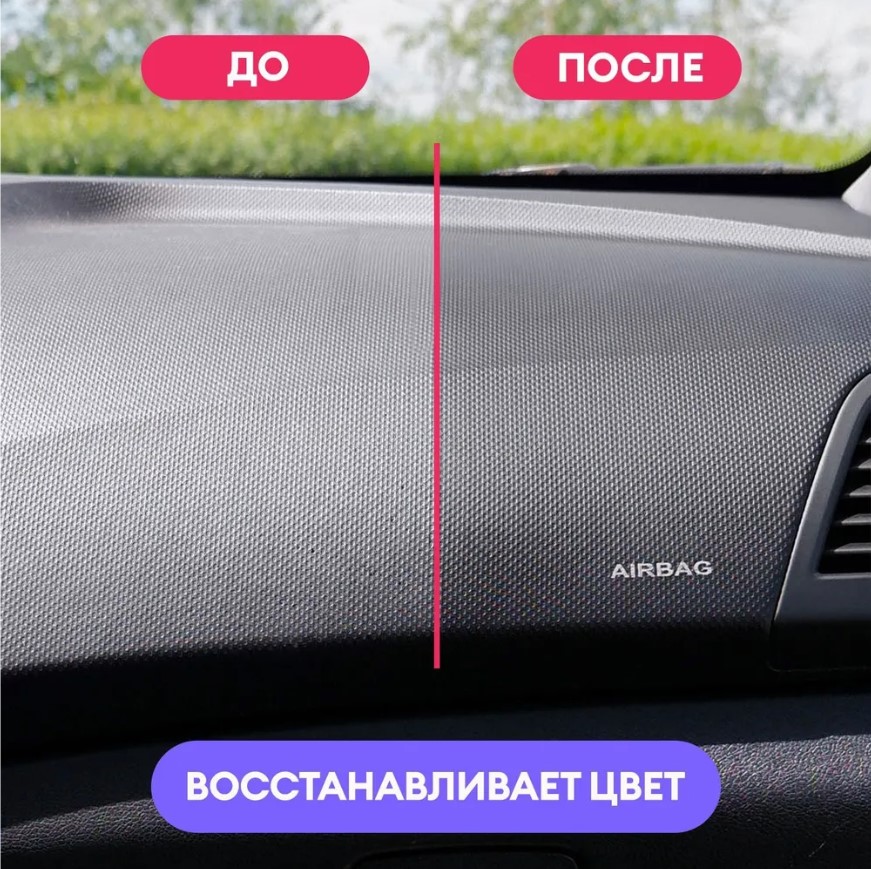 Нанести на поверхность с помощью распылителя или губки, распределить равномерно на поверхности круговыми движениями. Не допускать попадания на стекла и зеркала.