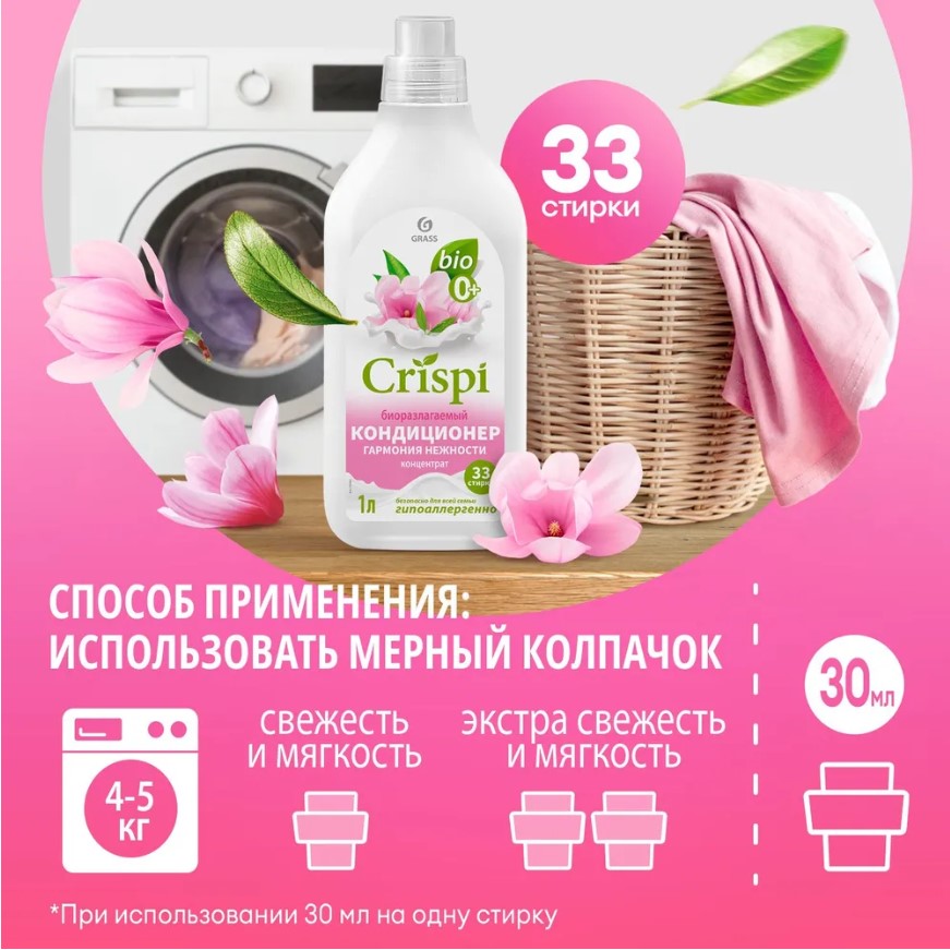 Кондиционер-ополаскиватель для стирки CRISPI концентрированный Гармония нежности, 1 л