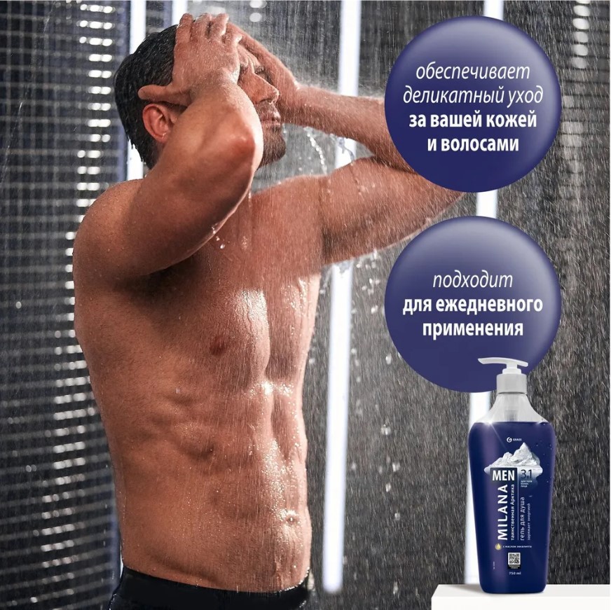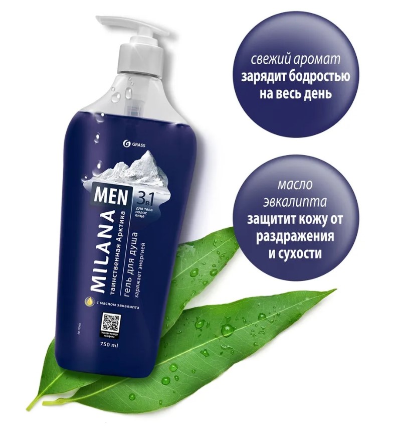 Гель для душа Grass Milana MEN «Таинственная арктика» с маслом эвкалипта, 750 мл
