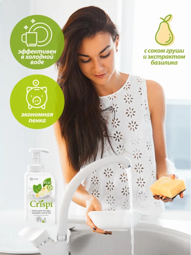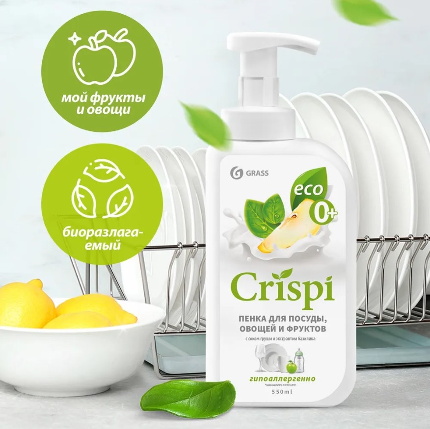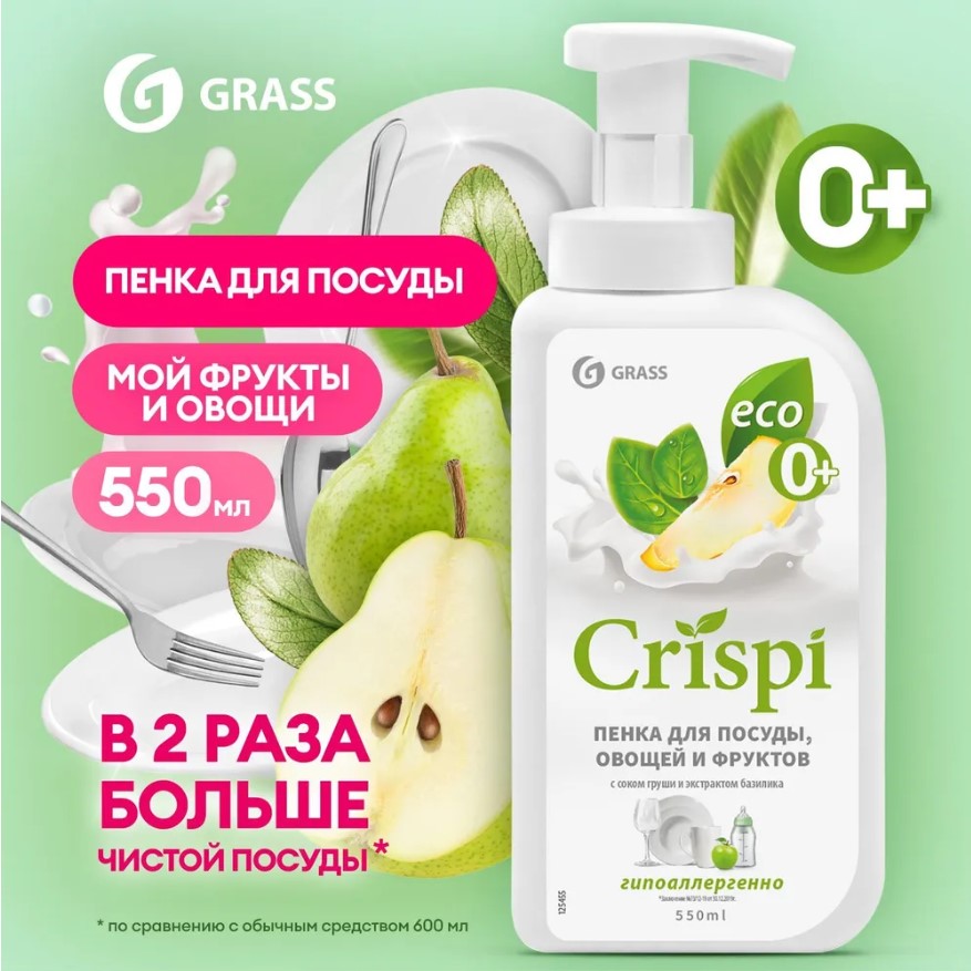 Пенка для мытья посуды, овощей и фруктов Grass «Crispi» с соком груши и экстрактом базилика, 550 мл
