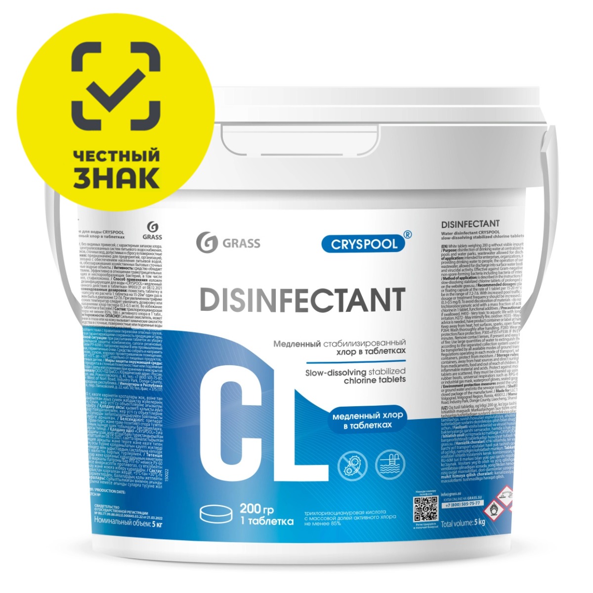 Средство дезинфицирующее для воды CRYSPOOL медленный стабилизированный хлор пролонг. действия 5кг