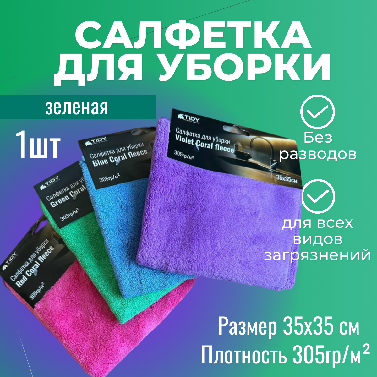 Tidy Салфетка для уборки "Coral fleece" зеленая 35х35см 305гр/м²