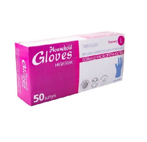 Перчатки латексные High Risk, синие, L, Household Gloves, (50шт/уп)
