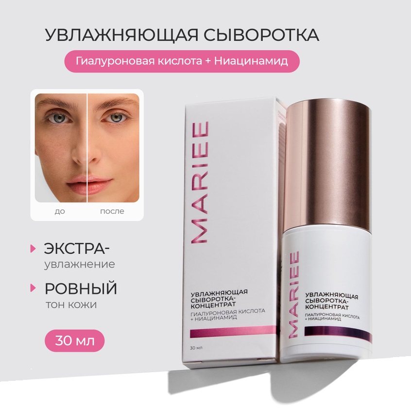 Сыворотка-концентрат Mariee Увлажняющая гиалуроновая кислота, ниацинамид, 30 мл
