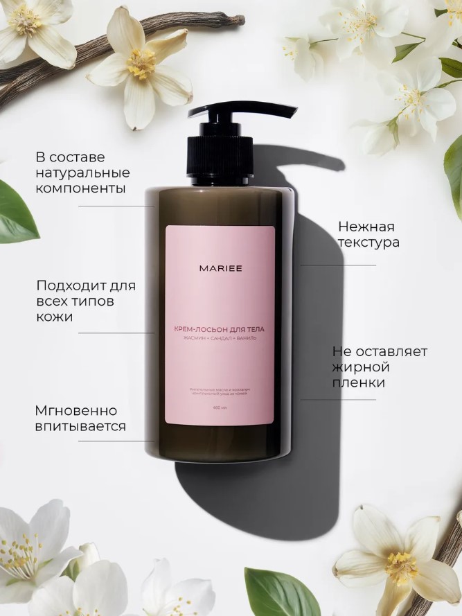 Крем-лосьон для тела Mariee жасмин+сандал+ваниль, 460мл.