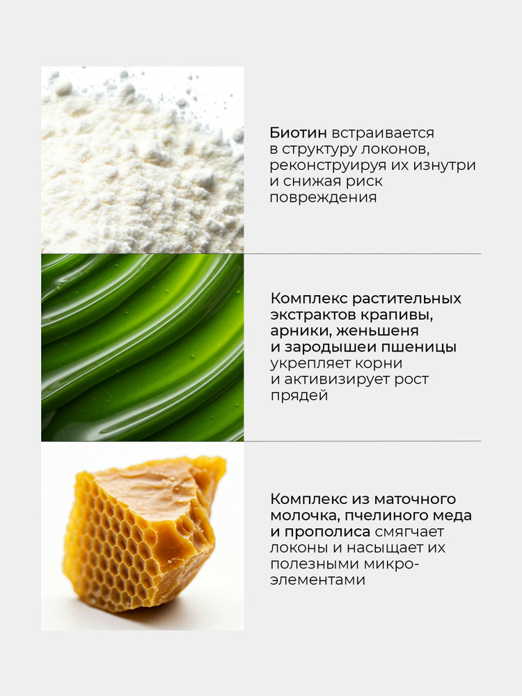 Нанесите маску на чистые влажные волосы, равномерно распределите по длине, избегая корней и кожи головы. Оставьте на 5–10 минут, а затем тщательно смойте тёплой водой. Рекомендуется применять 2 раза в неделю.