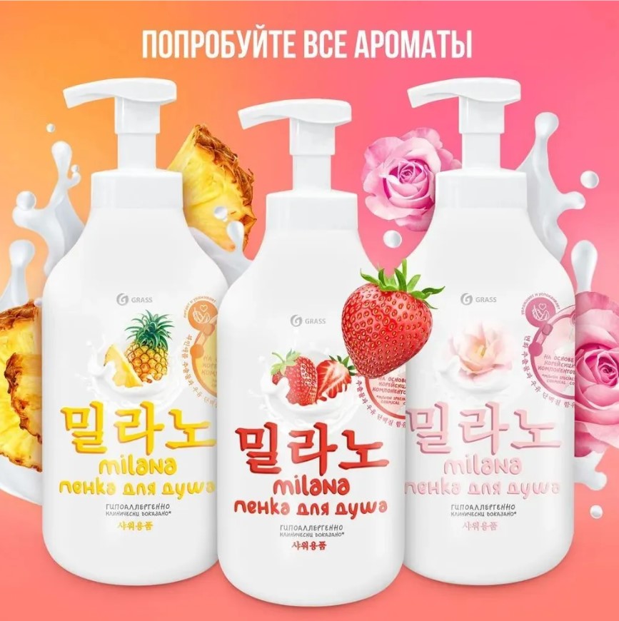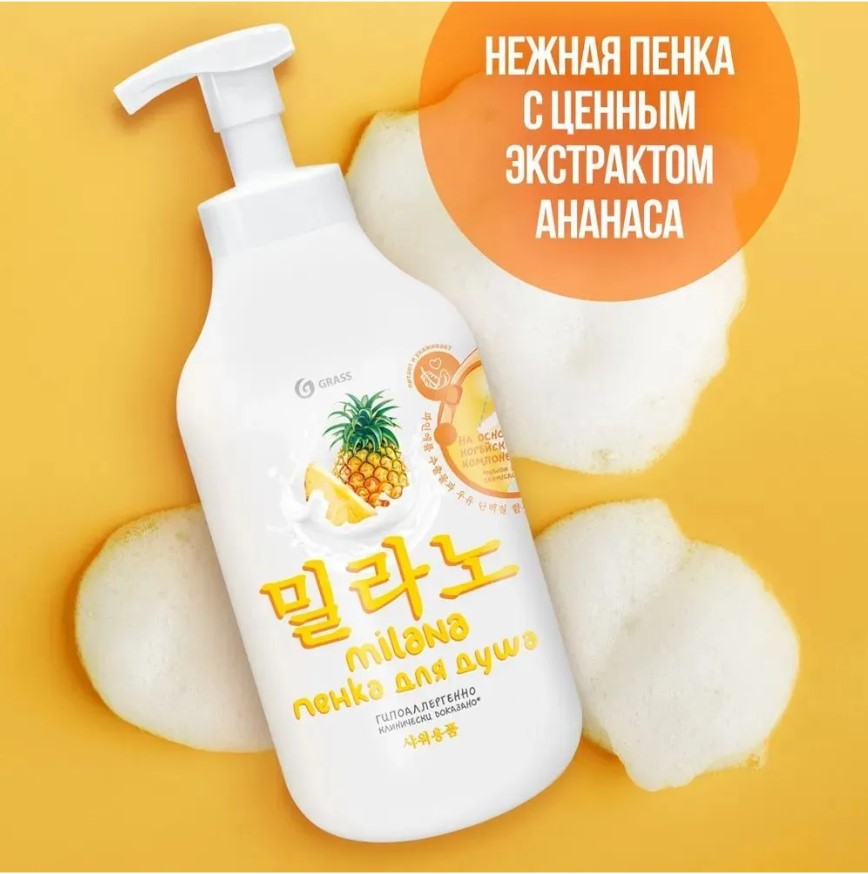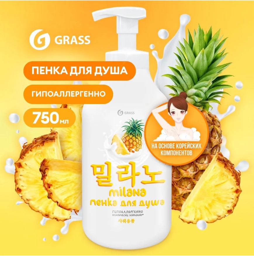 Гель-пенка для душа Grass Milana с экстрактом ананаса и молочными протеинами, 750 мл