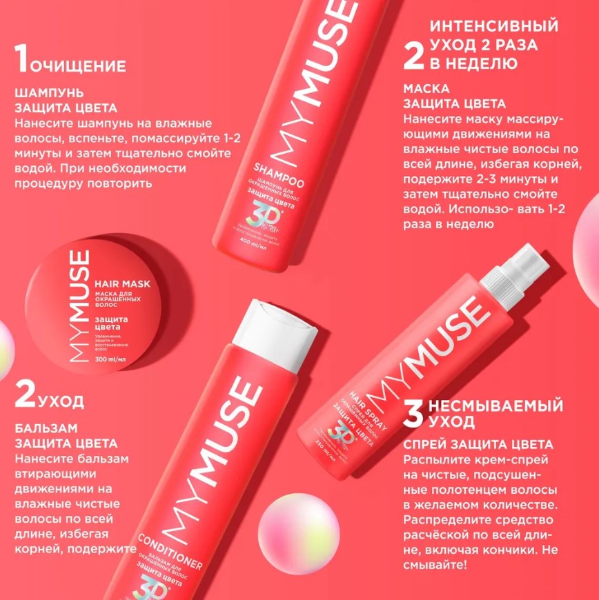 Бальзам для окрашенных волос MY MUSE "Защита цвета и увлажнение" 3D Matrix Plus, 400 мл