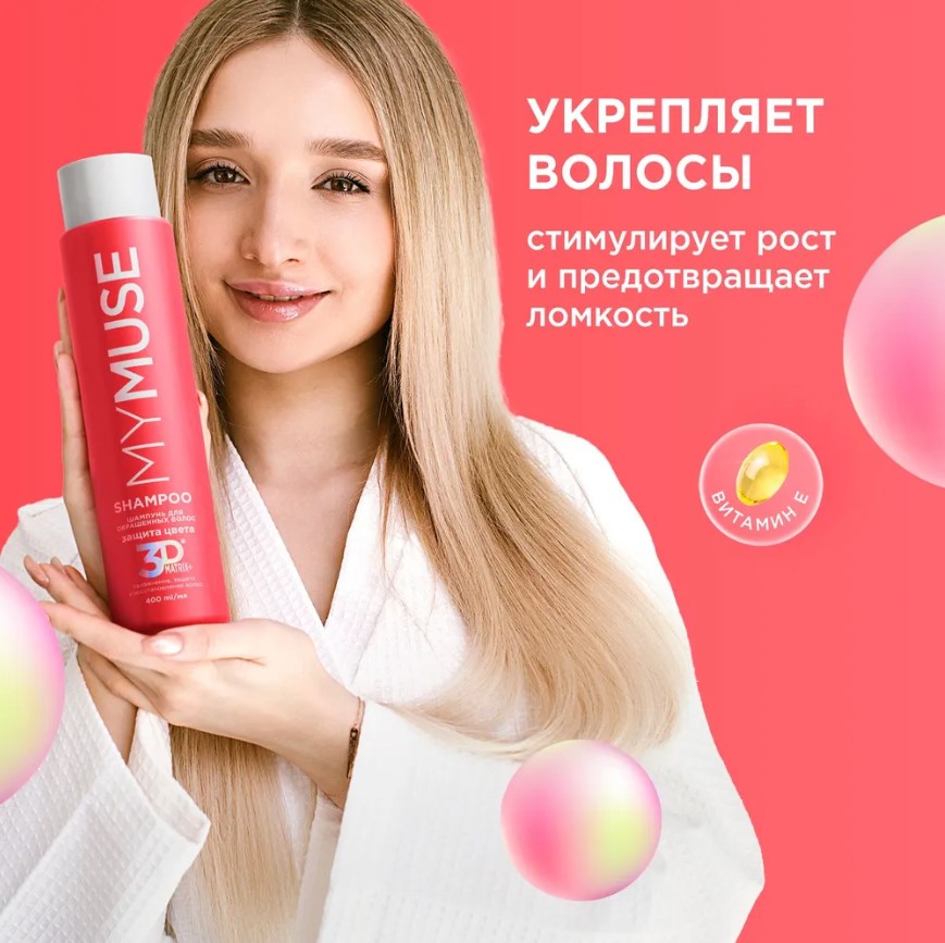 Шампунь для окрашенных волос MY MUSE "Защита цвета и увлажнение" 3D Matrix Plus, 400 мл