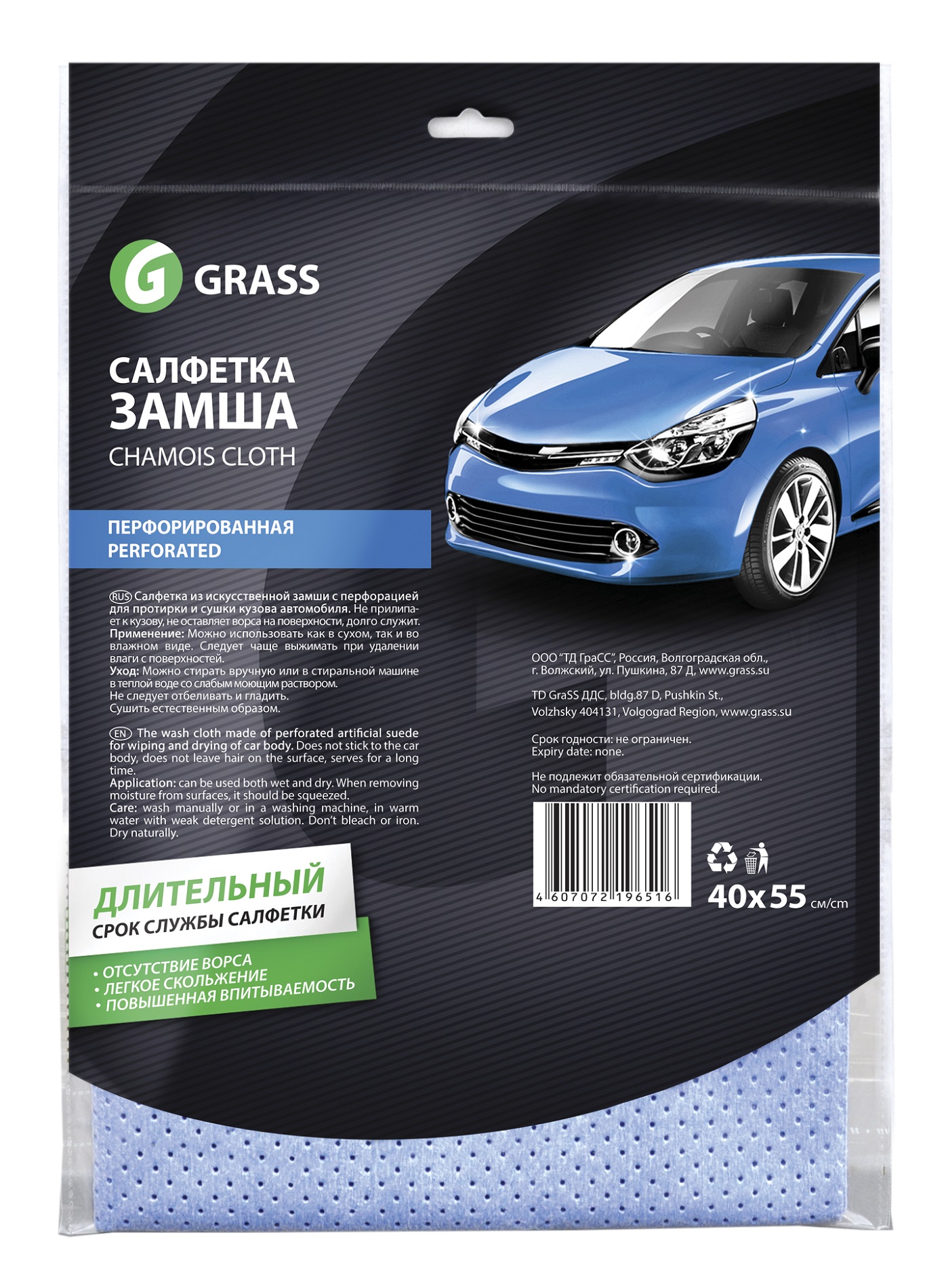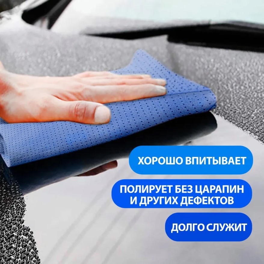 Салфетка из искусственной замши с перфорацией для протирки и сушки кузова автомобиля. Не прилипает к кузову, не образует катышек на поверхности, долго служит.